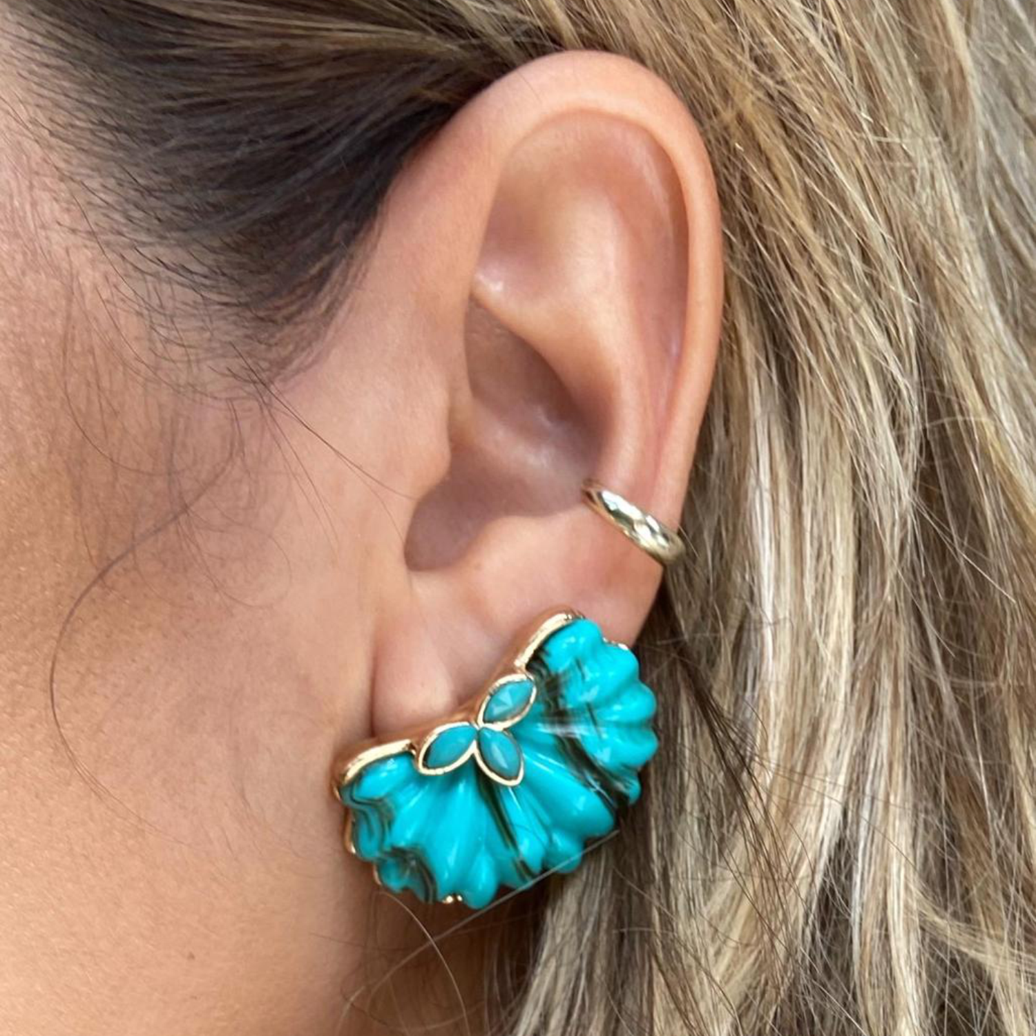 Brinco de resina acrílica turquesa em base de latão.